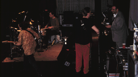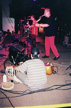 burglarized. Some of the VF gear was stored at the venue the night before the concert. Cash, computers, house drum kit, lighting control board and Brian Miller's microphone were taken. Thanks to our host, the microphones were 80% replaced by showtime. The June 1st concert was not affected. The concert was a huge success. (see shots from the crime scene) |
